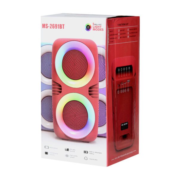 با اسپیکر پارتی باکس مدل MS2691BT، تجربه شنیداری خود را به سطحی بالاتر ببرید! این اسپیکر بینظیر با بیس قوی و صدای شفاف، هر مهمانی را به یک جشن فراموشنشدنی تبدیل میکند. با قابلیت بلوتوث، به راحتی اتصال داشته باشید و با نورپردازی جذاب، حالوهوای خاصی به مجالس خود اضافه کنید. همین حالا خرید کنید و مهمانیهای خود را متحول کنید!