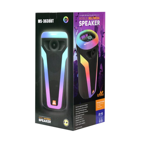 با اسپیکر پارتی باکس مدل MS3638BT، هر لحظه را به یک جشن تبدیل کنید! صدای شگفتانگیز و نورپردازی جذاب این اسپیکر، هر محفل را زنده میکند. با قابلیت اتصال بلوتوث، موزیکهای محبوبتان را بیوقفه پخش کنید و تجربهای فراموشنشدنی از لحظات شاد داشته باشید. همین حالا سفارش دهید و لحظات خاص خود را جذابتر کنید!