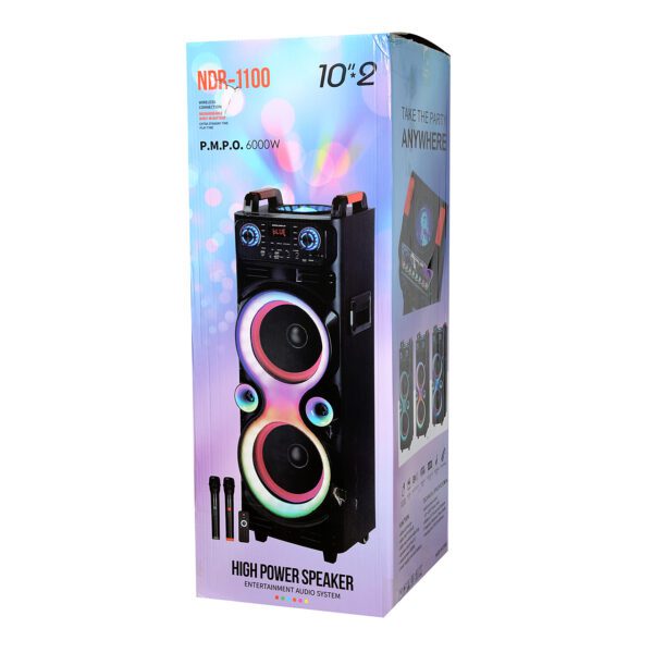 با اسپیکر پارتی باکس مدل NDR-1100، هر جمعی را به یک جشن فراموشنشدنی تبدیل کنید! این اسپیکر قدرتمند با صدای بینظیر، قابلیت نورپردازی جذاب و اتصالات بیسیم، لحظات شورانگیز را برایتان به ارمغان میآورد. بهسادگی ارتباط برقرار کنید و از موزیکهای محبوب خود لذت ببرید. تجربهای تازه از صدا و نور!