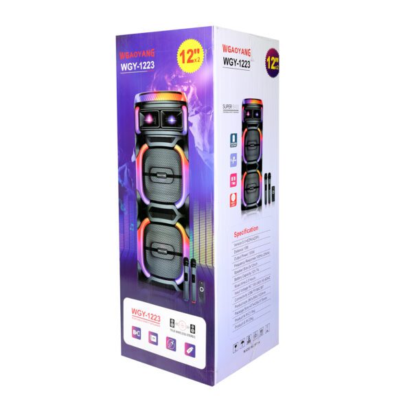 آمادهاید تا جشنهای شما به یادماندنی شوند؟ اسپیکر پارتی باکس مدل WGY-1223 با قدرت صدای فوقالعاده و باس عمیق، تجربهای بینظیر از موسیقی را برای شما به ارمغان میآورد. با طراحی شیک و نورپردازی جذاب، فضای مهمانیتان را دگرگون کنید. همین حالا این اسپیکر پرقدرت را تهیه کنید و لحظات خود را هیجانانگیزتر کنید!